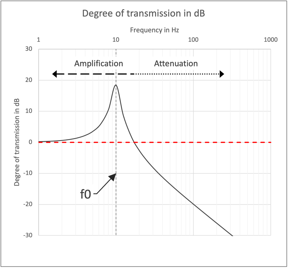 The example above shows resonance at 10Hz. Attenuation starts at about 20Hz and increases as frequency goes up. At 50Hz where motors run, significant attenuation is delivered.