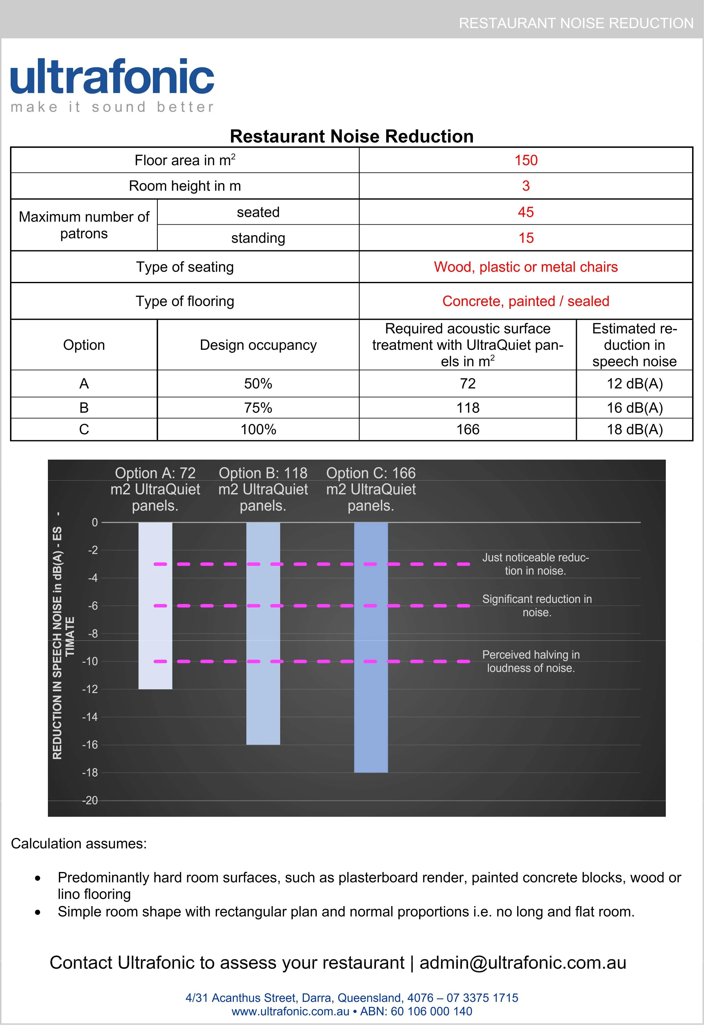 Using this tool, we can help decide how much to reduce the noise based on average occupancy and human loudness perception. Some may want it fairly quiet but others will want a bit more ambience. This will optimise the spend on acoustic treatment and prevent what we commonly see, which is too much absorption causing a lifeless restaurant.